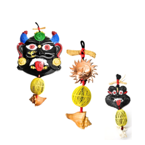 The Drishti Bommai Evil Eye Protector, an exquisite blend of tradition and modernity. This Nazar Battu serves not only as a stunning decorative piece but also as a powerful negative energy remover for home. Crafted from high-quality plastic, this kirtimukha for home adds cultural significance to your decor while safeguarding your environment. Perfect for hanging at your home entrance or adorning any wall, this stylish evil eye hanging provides both protection and charm.