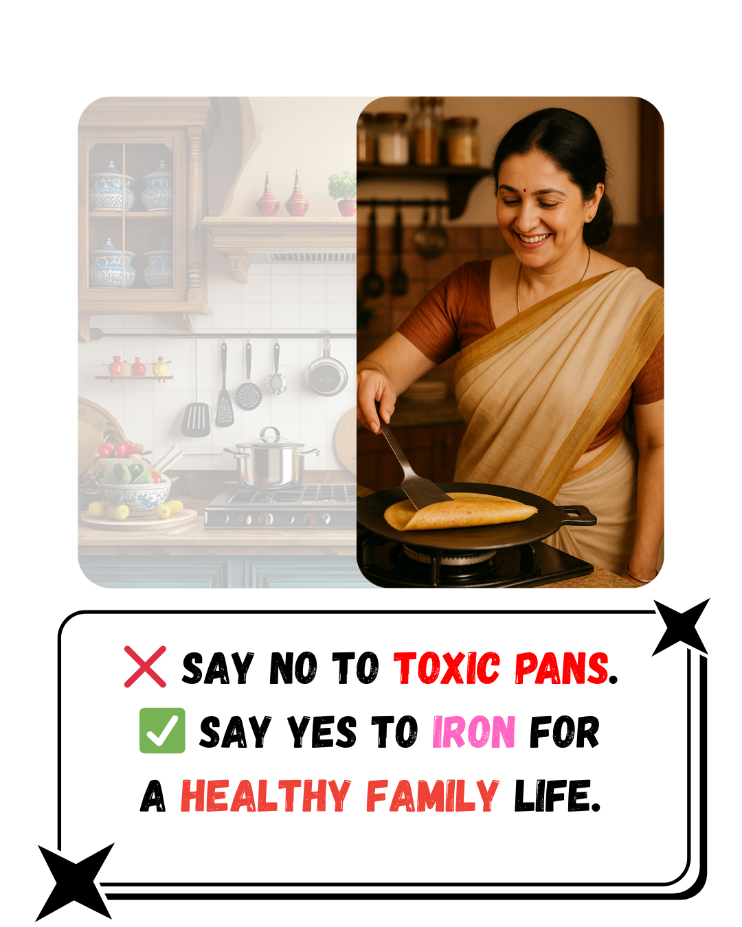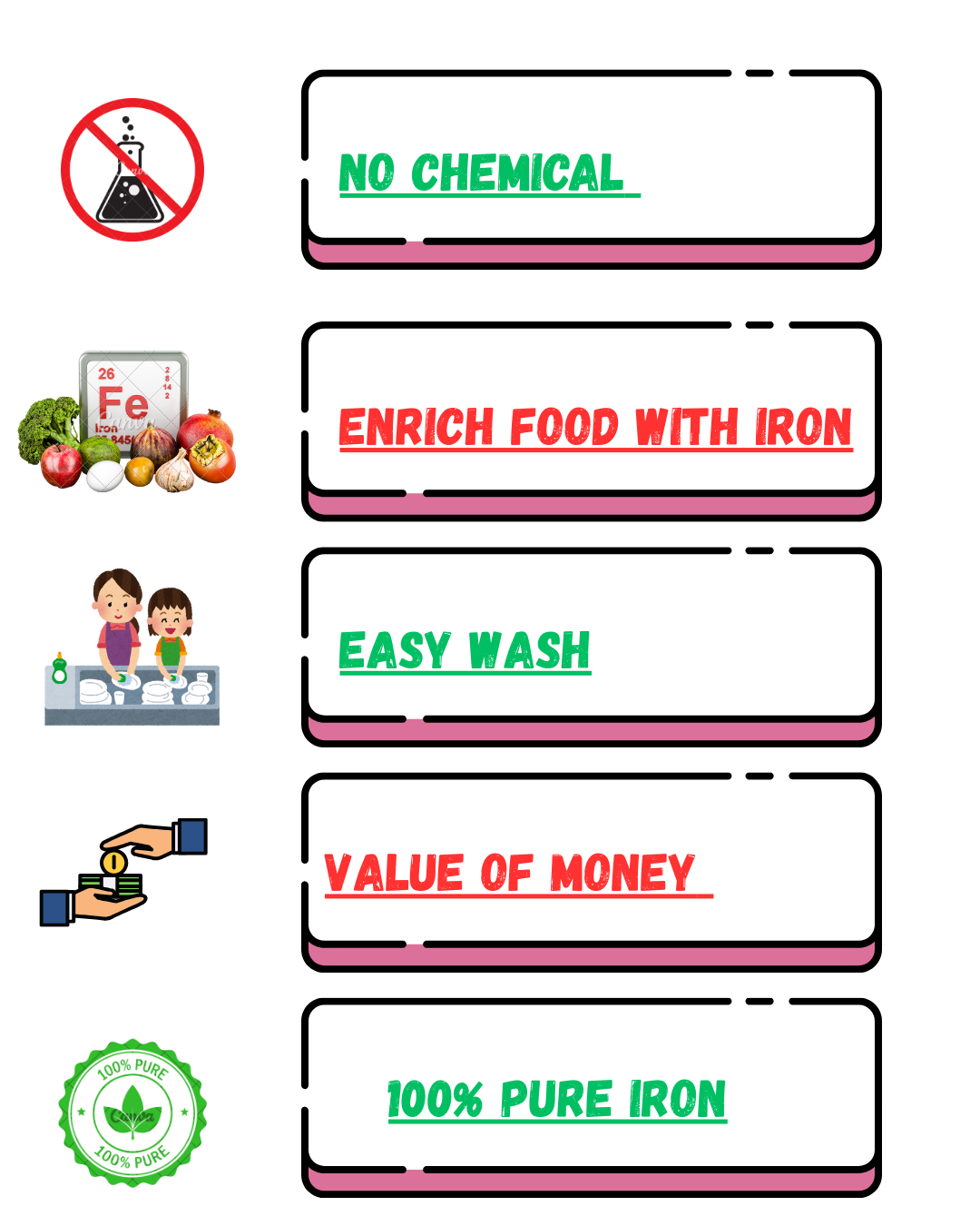 👌100% Pure Iron: Made from natural cast iron without any chemical coating or synthetic materials—durable, healthy, and eco-friendly.